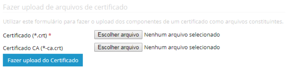 - E faça o upload dos arquivos .crt e CA e depois clique no botão Fazer upload do Certificado.