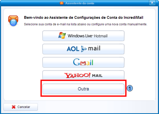Na tele inicial de configuração de conta do IncrediMail, clique em “Outra” (1).