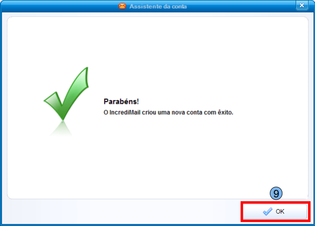 Ok, os procedimentos iniciais foram configurados com sucesso, clique em “Ok” (9) para acessar a conta.