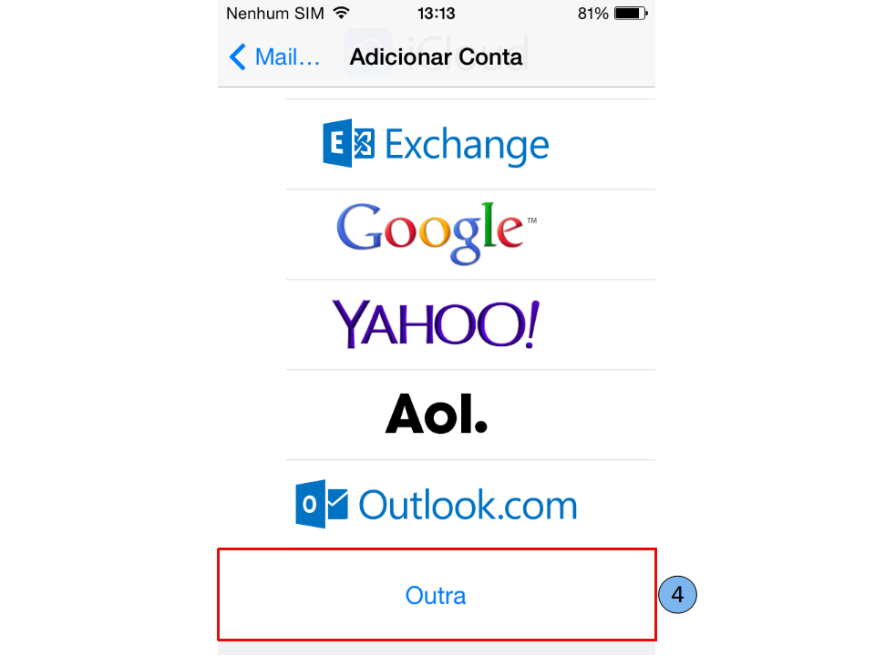 Na tela com várias opções de e-mail, escolha "Outra" (4).