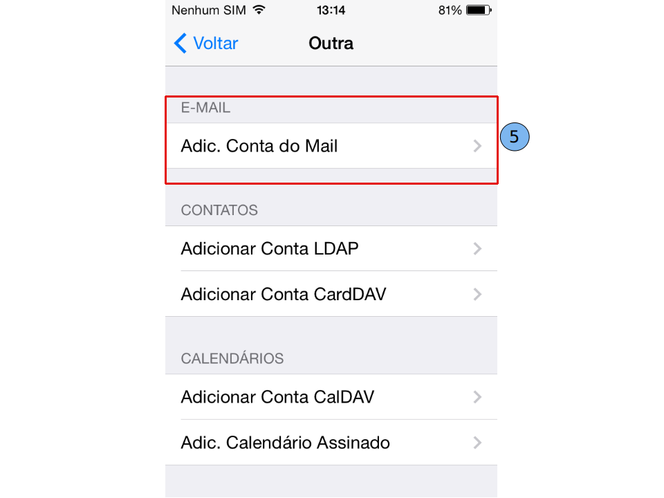 Em seguida, selecione "Adicionar Conta do Mail" (5).