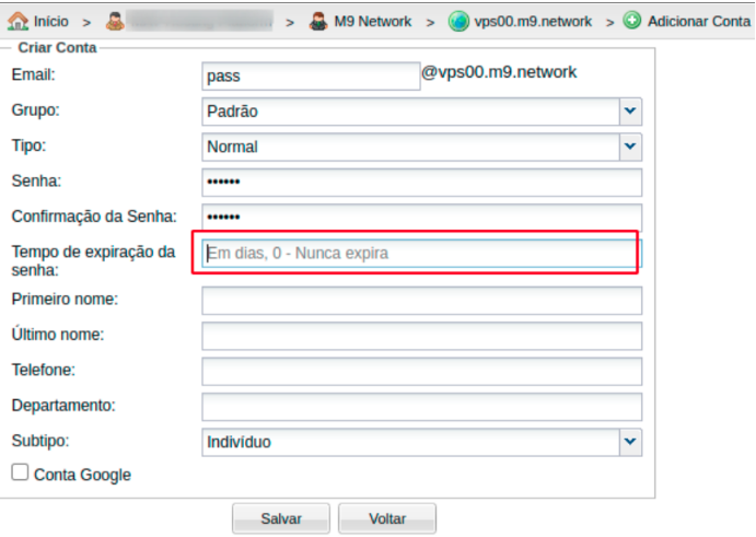 O número positivo inserido será o número de dias que falta para a senha expirar a partir da hora que a alteração foi salva.
