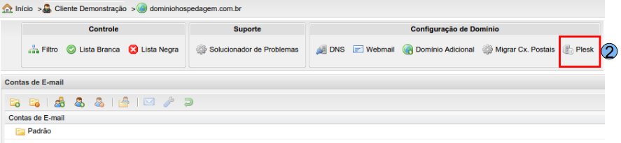 Em seguida utiliza a opção “Plesk” (2):